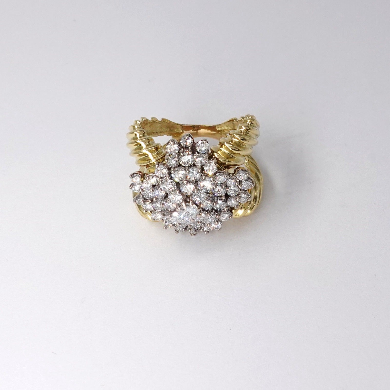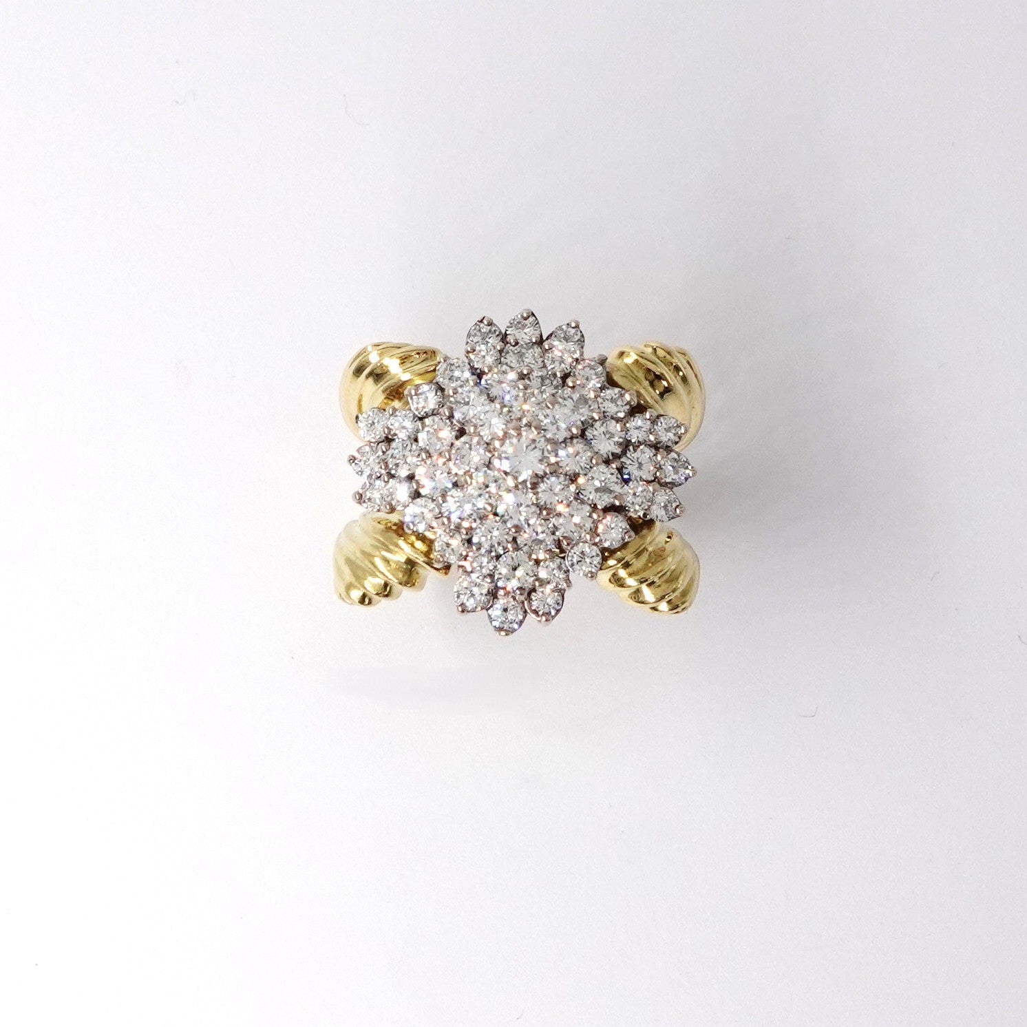Anello in oro giallo e bianco 18kt con diamanti taglio brillante