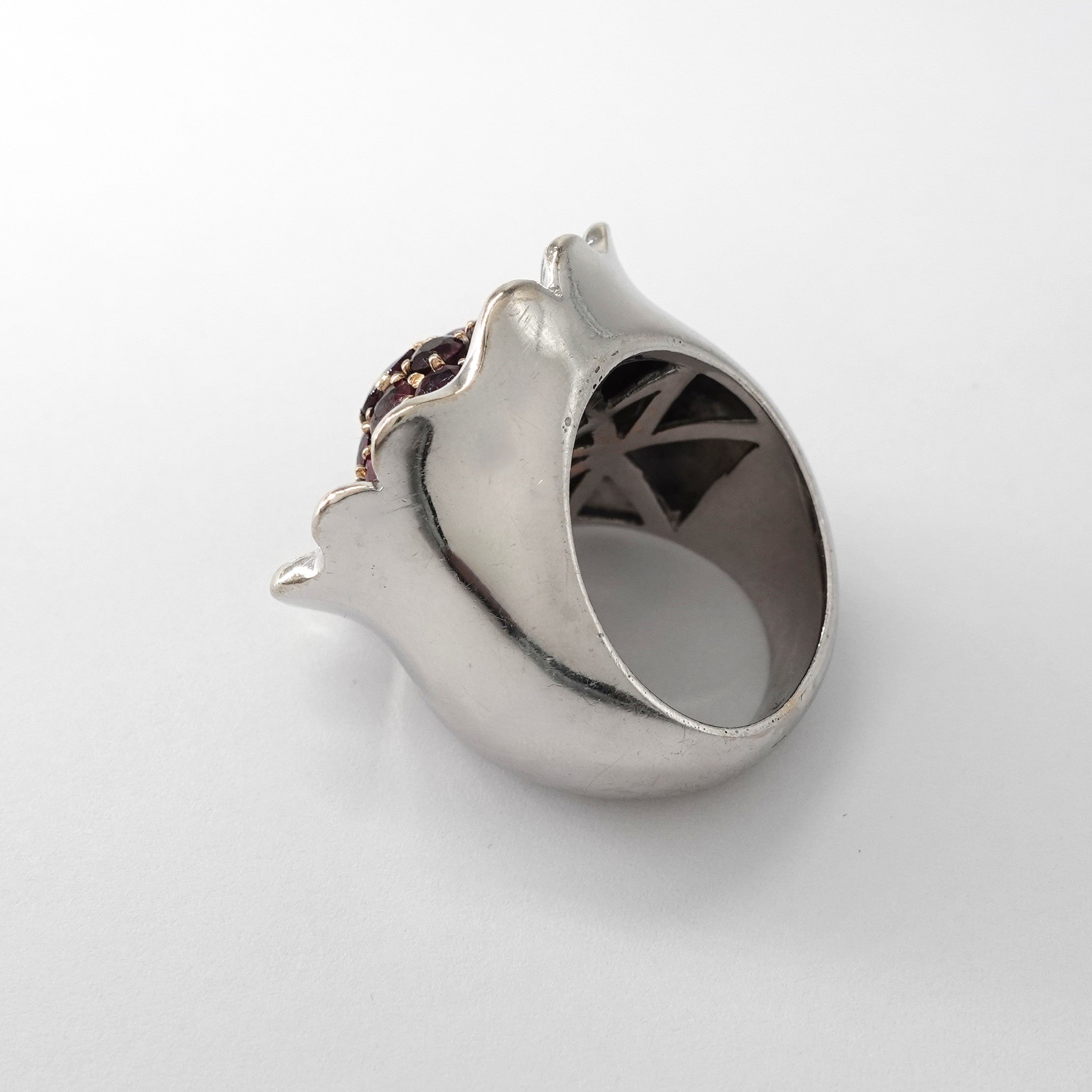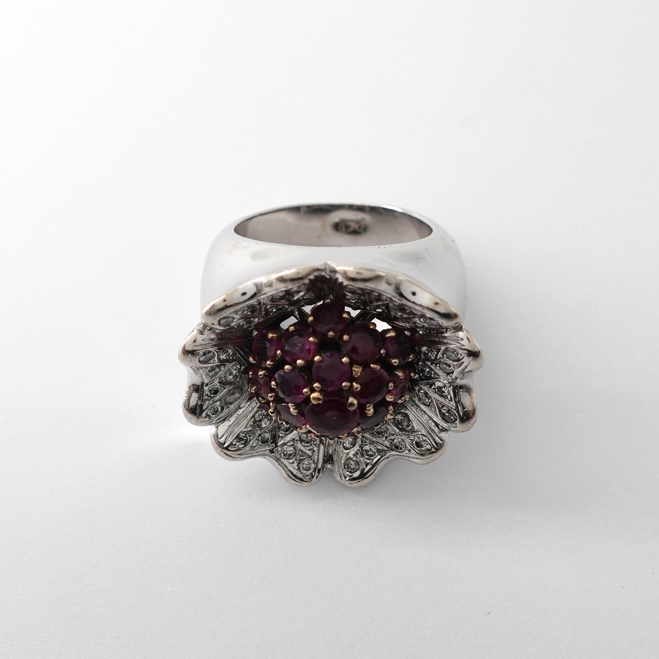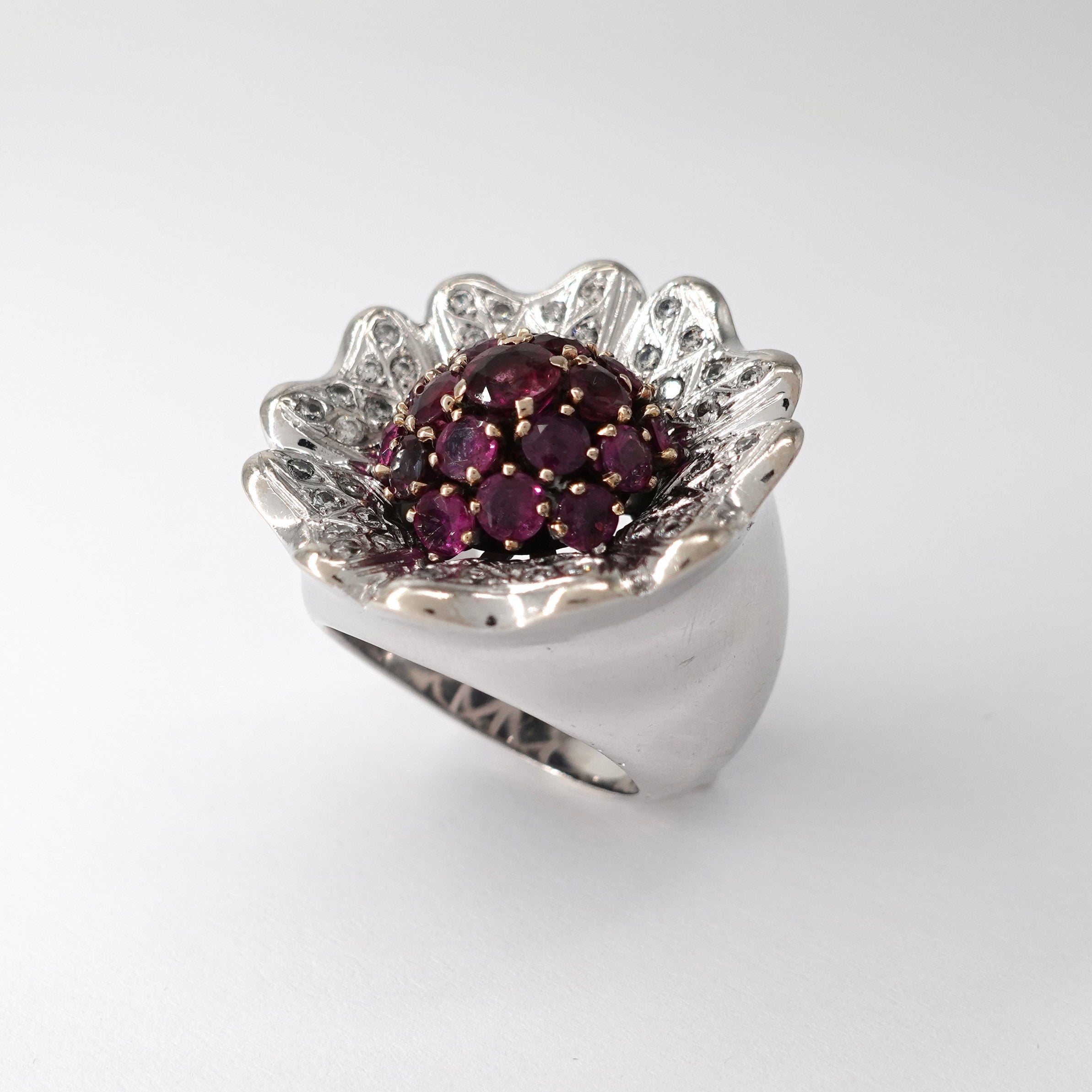 Anello fiore in oro bianco 9kt con rubini e zirconi