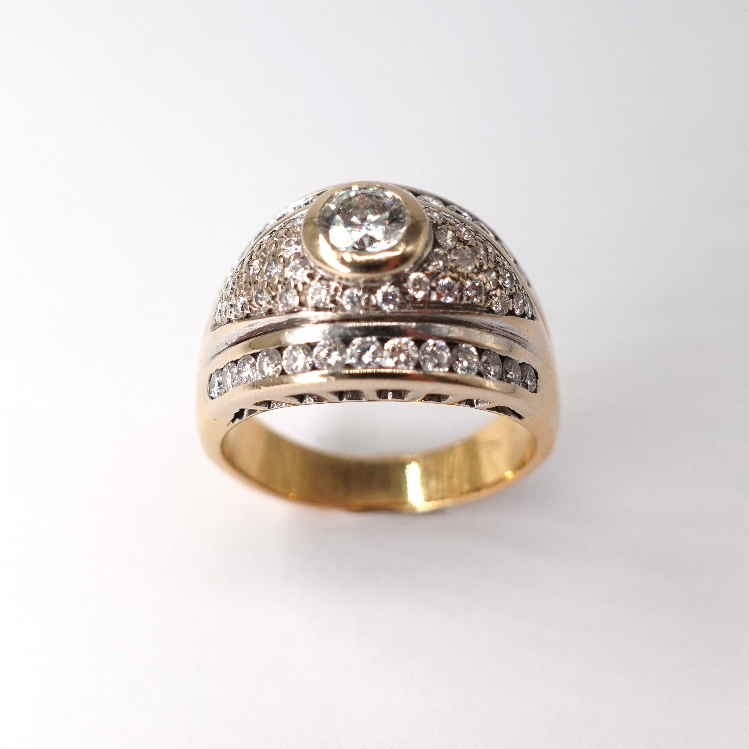 Anello in oro bianco e giallo 18kt con diamanti taglio brillante (0,45ct il centrale e 1,70ct i laterali)
