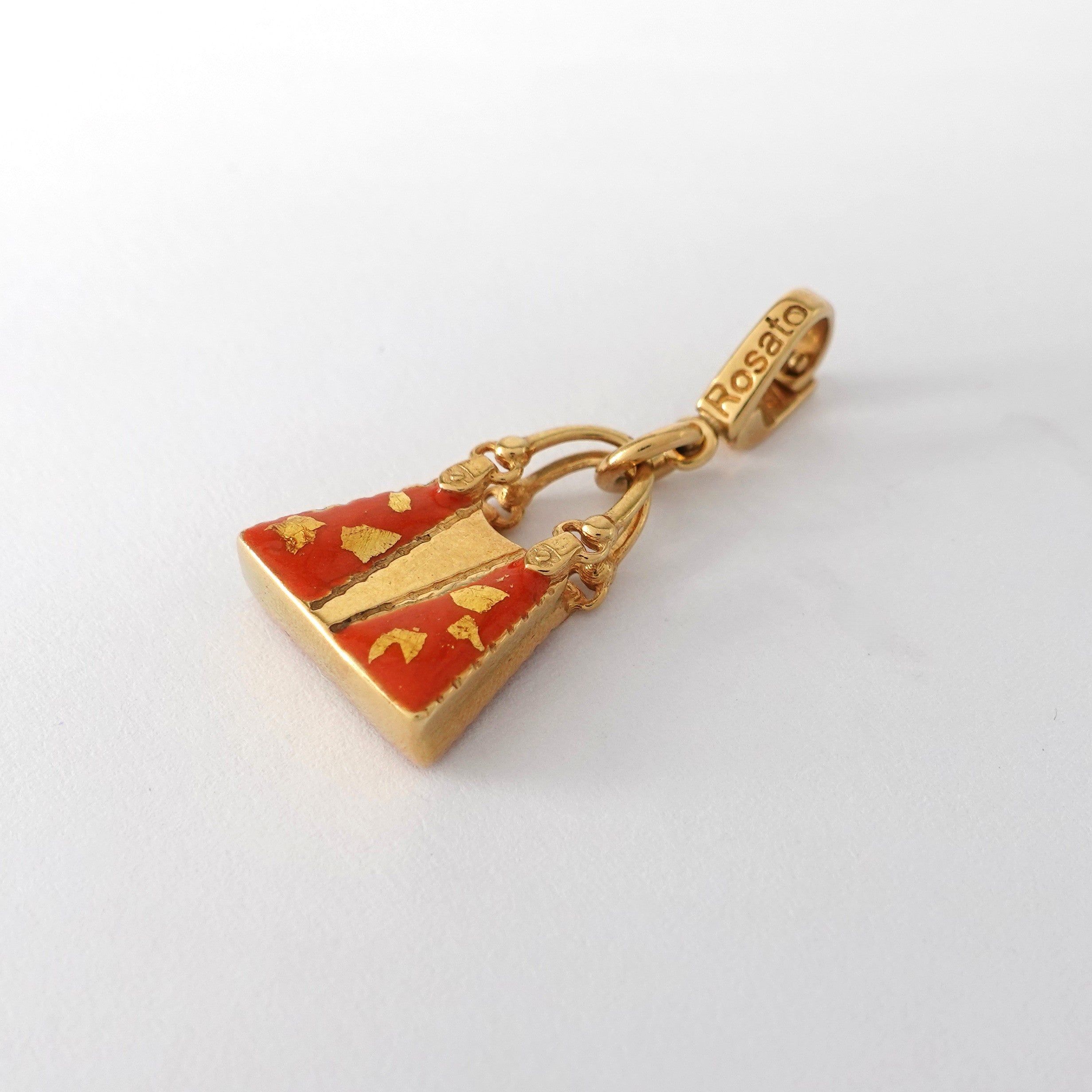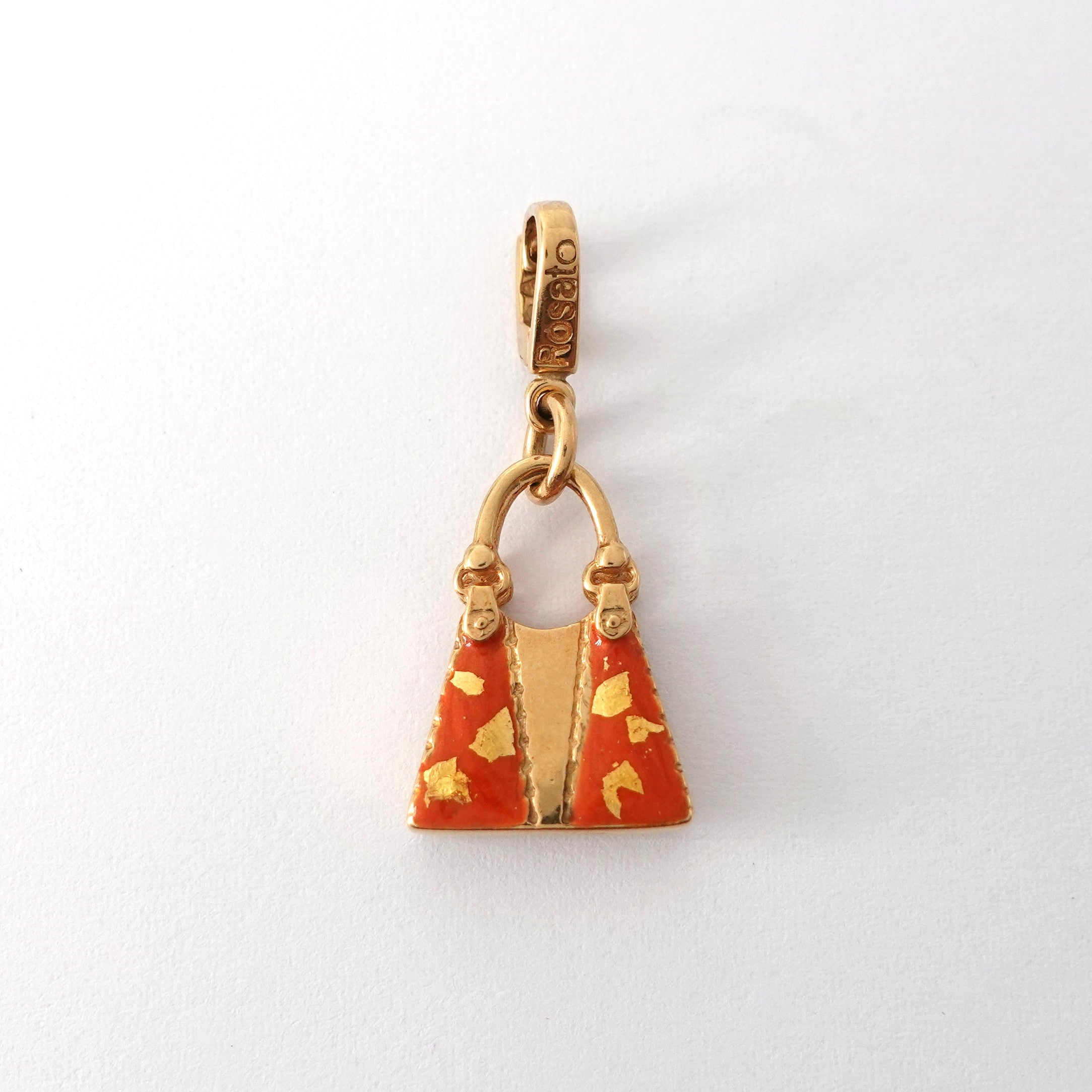 Ciondolo borsetta ROSATO in oro giallo 18kt e smalto arancio