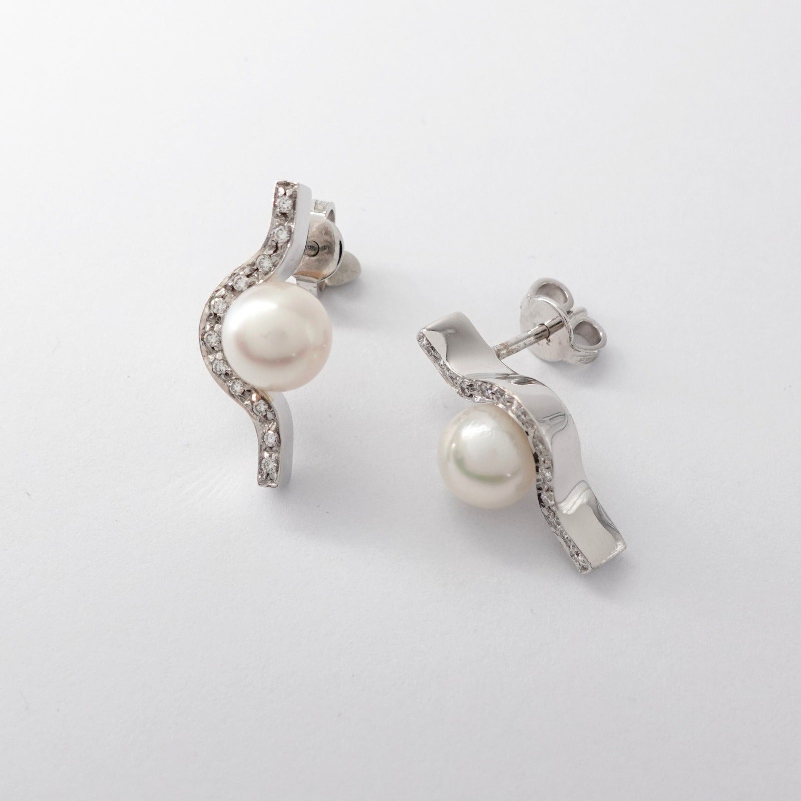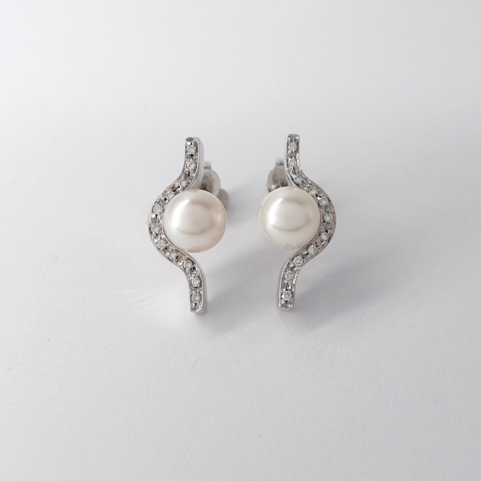 Orecchini in oro bianco 18kt con perle e diamanti taglio brillante