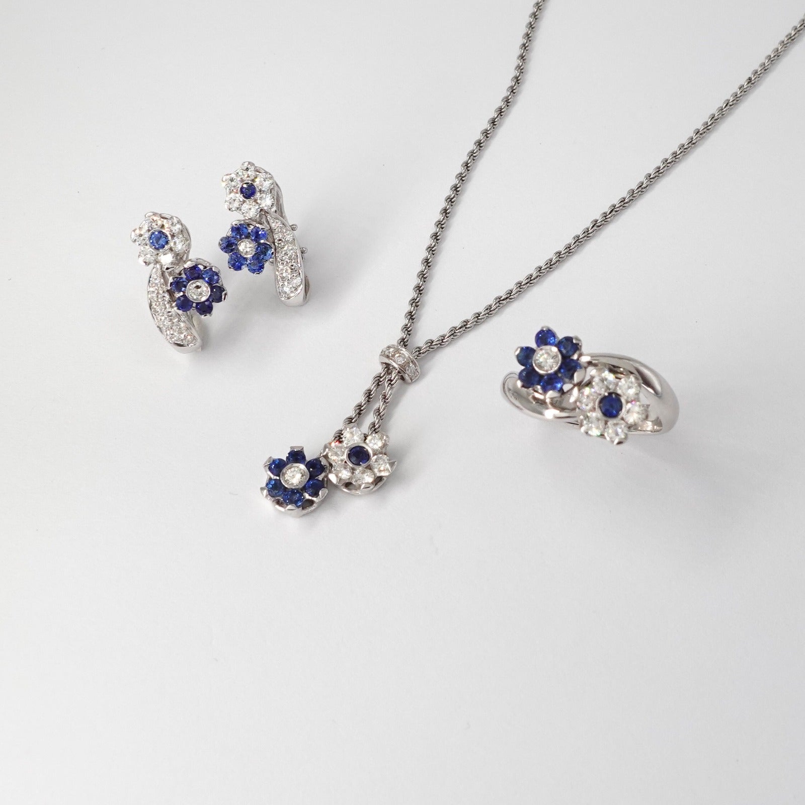 Parure DAMIANI in oro bianco 18kt con diamanti taglio brillante e zaffiri