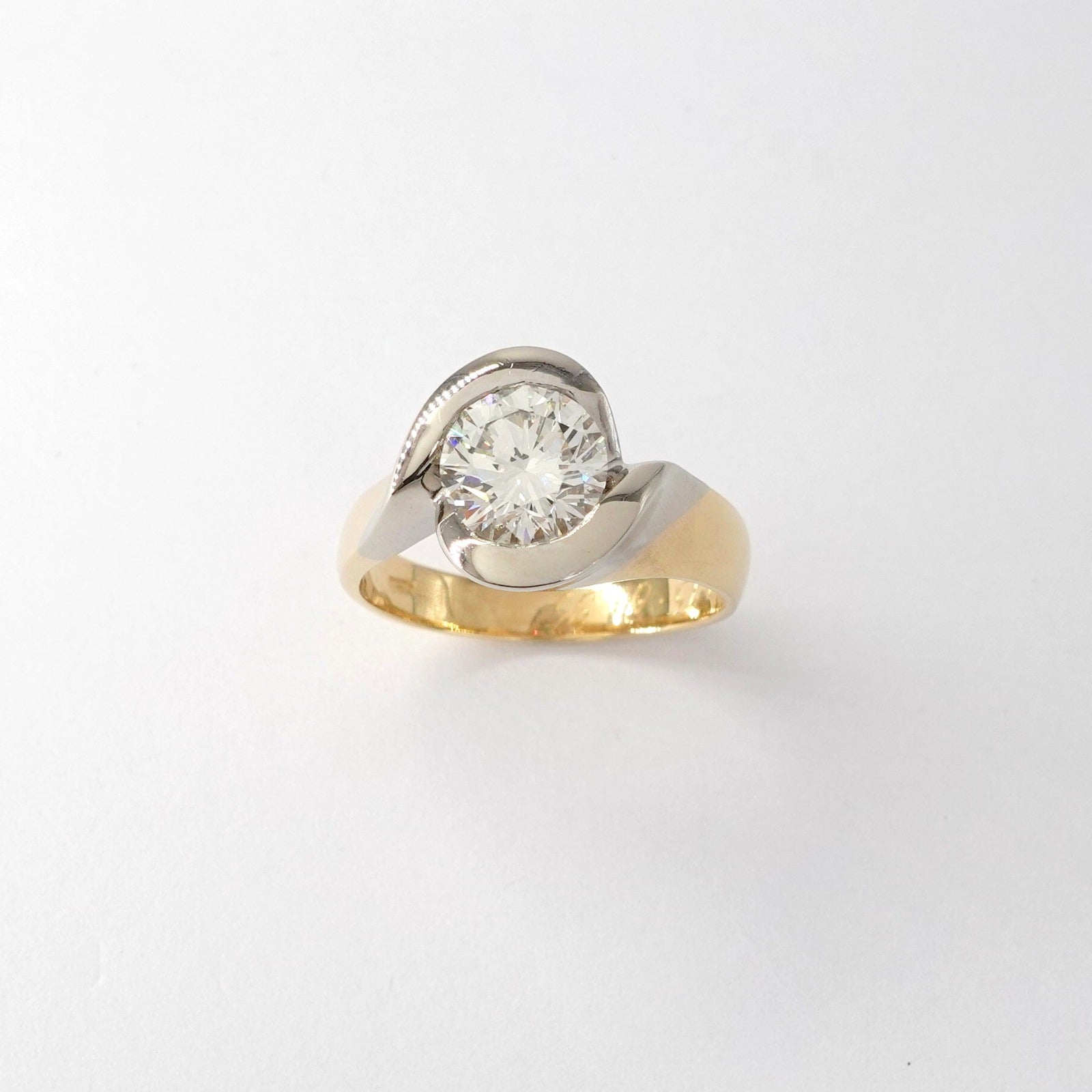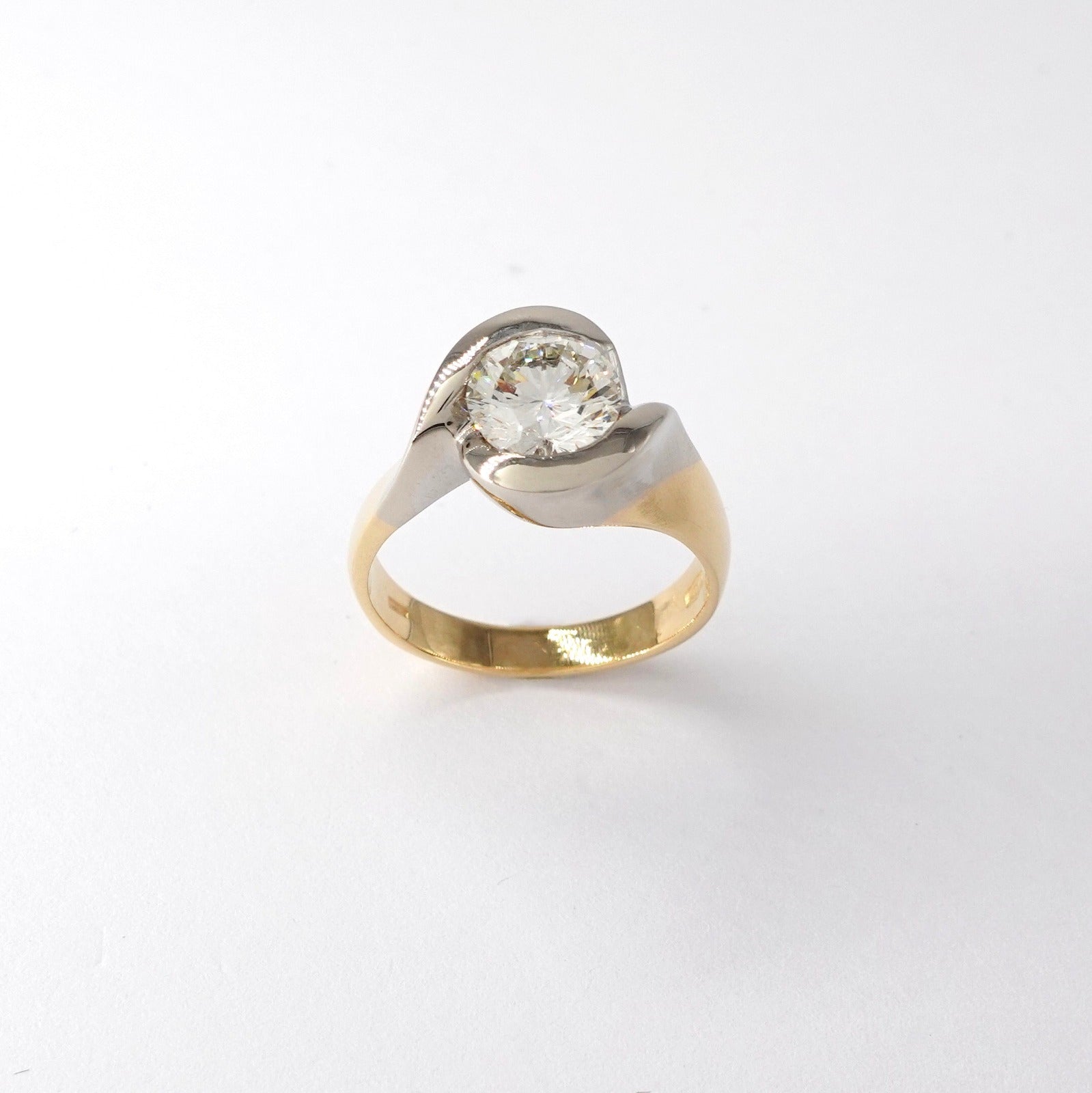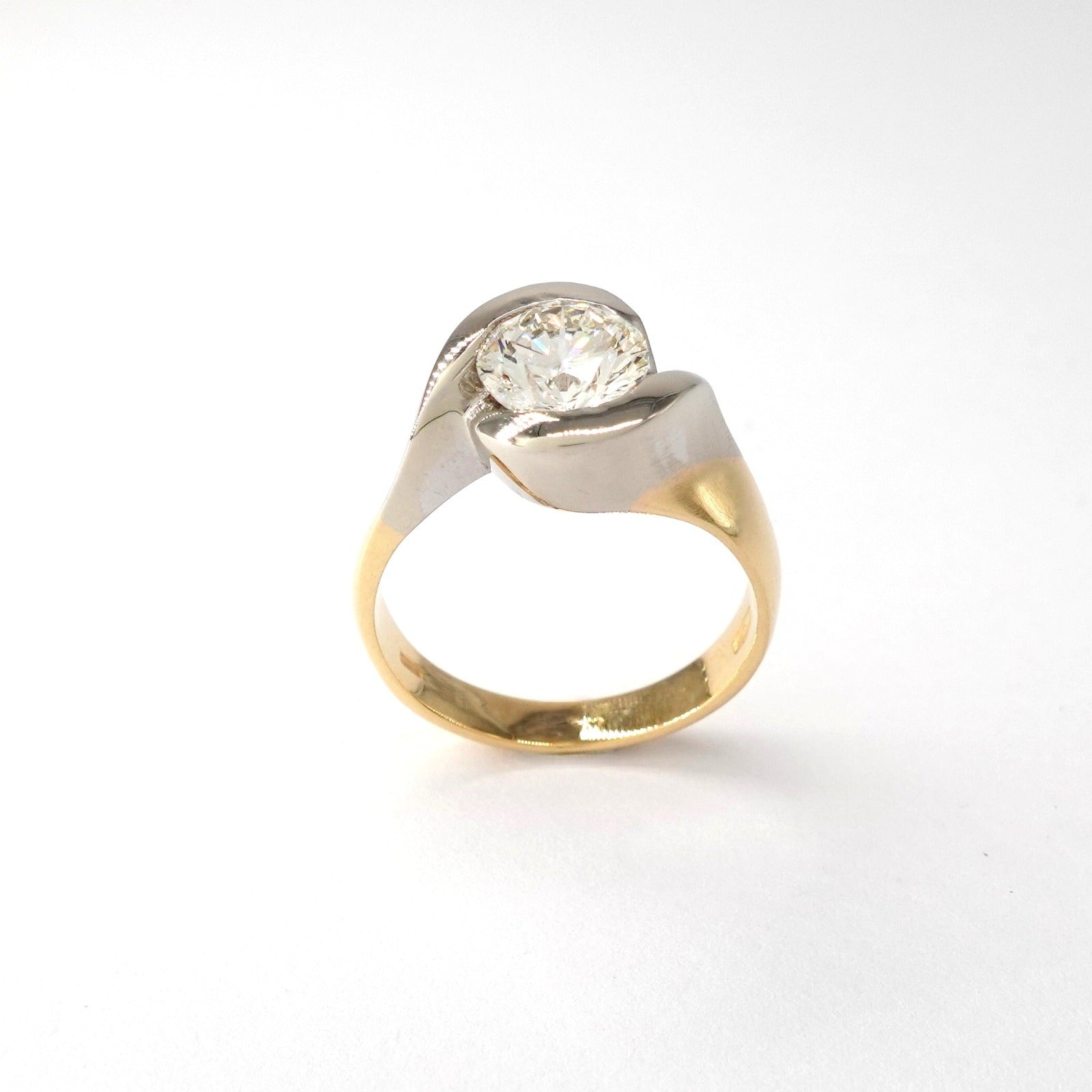 Solitario in oro giallo e bianco 18kt con diamante taglio brillante (1,35ct)