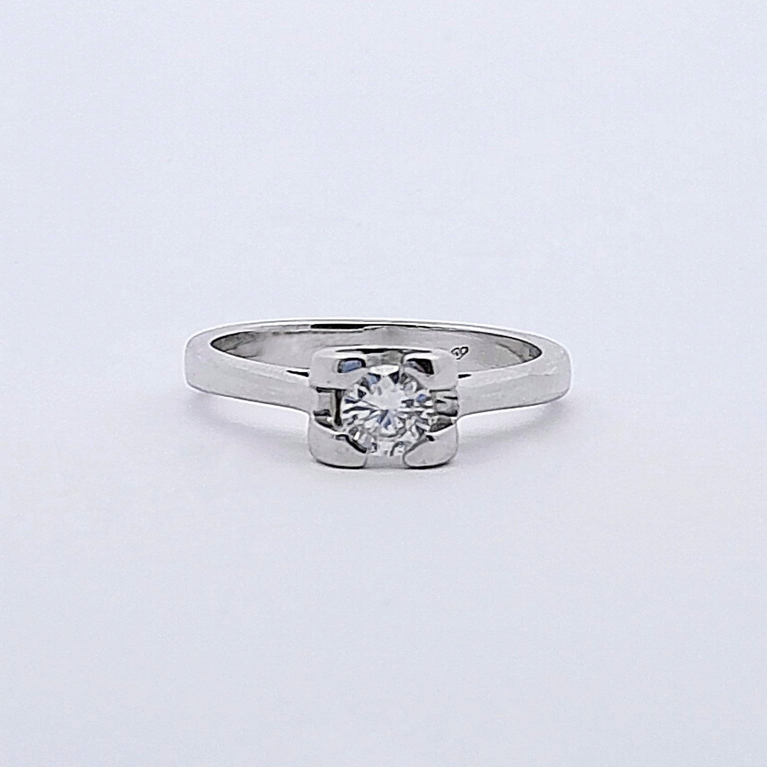 Solitario in oro bianco 18kt con brillante (0,33ct) e lavorazione a cuore.
