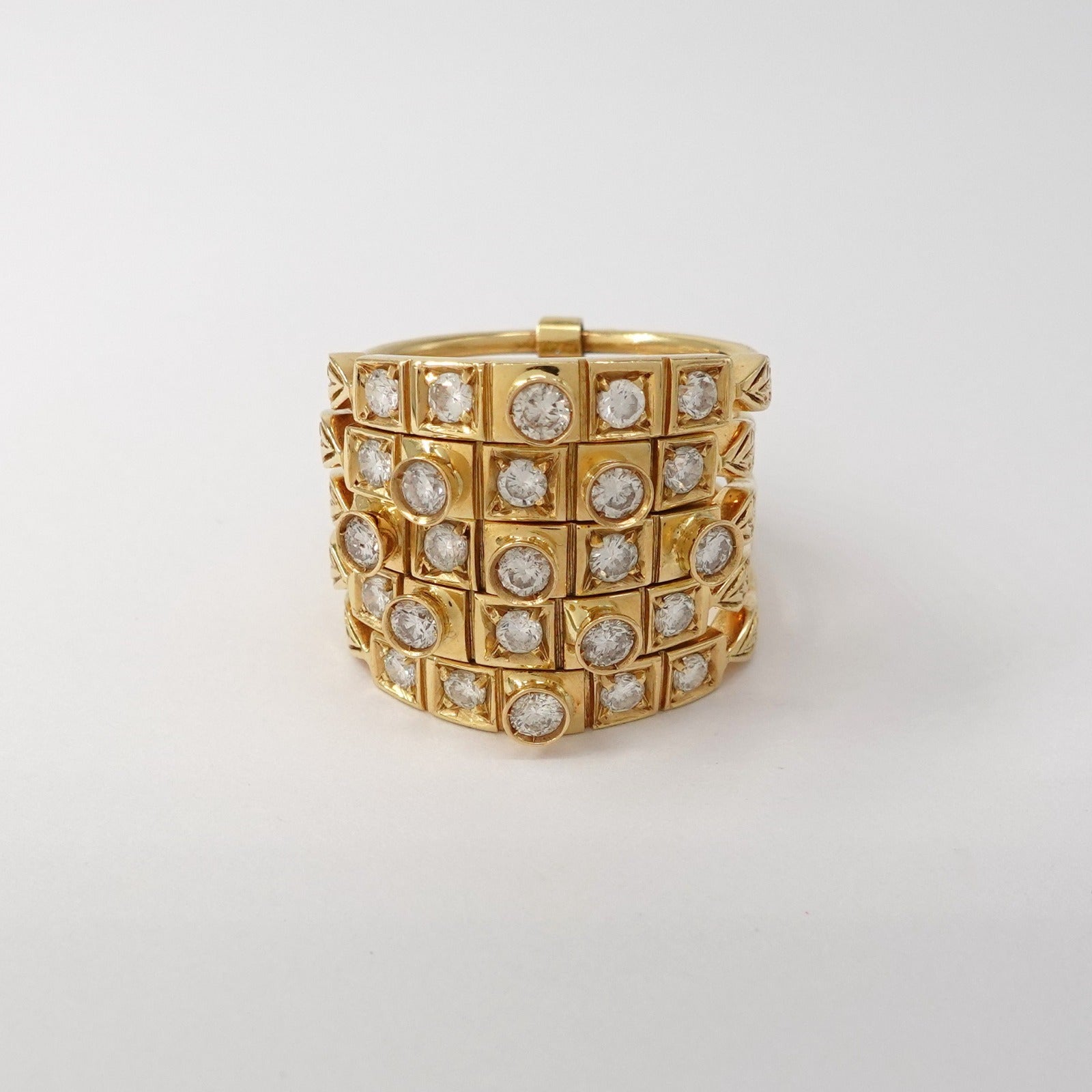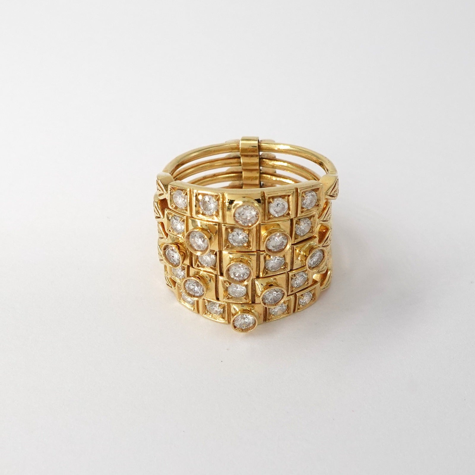 Anello a cinque fedi in oro giallo 18kt con diamanti taglio brillante