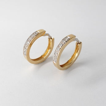 Orecchini a cerchio in oro giallo e bianco 18kt con diamanti taglio brillante